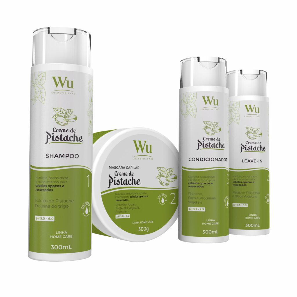O SHAMPOO CREME DE PISTACHE WU possui uma fórmula cremosa e nutritiva que oferece uma limpeza equilibrada que respeita os fios e couro cabeludo. Enriquecido com extrato da semente de Pistache (Pistacia Vera), rico em ácidos graxos e antioxidantes naturais, proporciona hidratação profunda, revitalização da fibra capilar e um toque luxuoso que envolve os fios com carinho e brilho. A presença da proteína do trigo hidrolisada ajuda a fortalecer e reparar os fios danificados, enquanto ativos condicionantes oferecem desembaraço e toque sedoso desde a primeira aplicação.